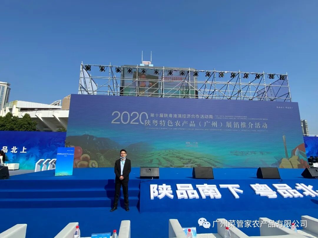广州菜管家农产品有限公司作为广东省龙头企业中的一员,今天有幸参加第十届陕粤港澳经济合作活动周--2020陕粤特色农产品(广州)展销推介活动,并作为代表上台发言。